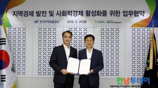 [전남투데이 윤진성 기자]한국주택금융공사(HF, 사장 이정환)는 지난 20일 (사)부산사회적경제유통센터(이사장 임경수)와 부산 문현금융로 부산국제금융센터에서 ‘지역경제 발전 및 사회적경제 활성화를 위한 업무협약’을 체결했다고 밝혔다.