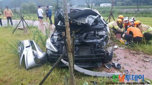 [전남투데이 윤진성 기자]28일 새벽 5시 50분경 국도 15호선 고흥~나로도간 고흥읍 호천마을 호천주유소 앞 도로에서 송모(20·남·도화면)씨가 운전하던 소나타 승용차가 가드레일을 들이받고 길옆 수변공원으로 추락하는 사고가 발생했다.