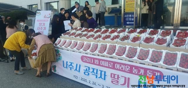 지난 달 20일 강인규 나주시장의 남평읍 딸기 농가 격려 방문을 시작으로 24일부터 3월 6일까지 시청(1100박스)을 비롯해 농협중앙회(200박스), 동신대학교(227박스), 나주소방서(211박스), 한전나주지사(112박스) 등 지역 유관기관이 참여했다.