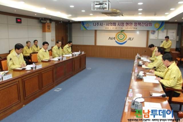 [전남투데이 이용호 총괄본부장] 나주시(시장 강인규)는 20일 오후 5시 시청 이화실에서 시의회(의장 김선용)와 시정 주요 현안에 대한 정책 간담회를 갖고 시민 행복과 지역발전을 위한 상호 협력 방안을 논의했다.