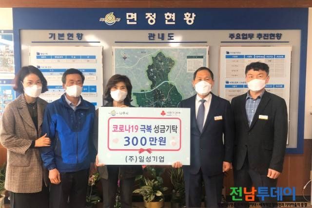 [전남투데이 이용호 총괄본부장] 나주시는 24일 반남면 소재 ㈜일성기업(대표 나용철)에서 코로나19 극복을 위한 후원금 300만원을 반남면에 기탁했다고 밝혔다.