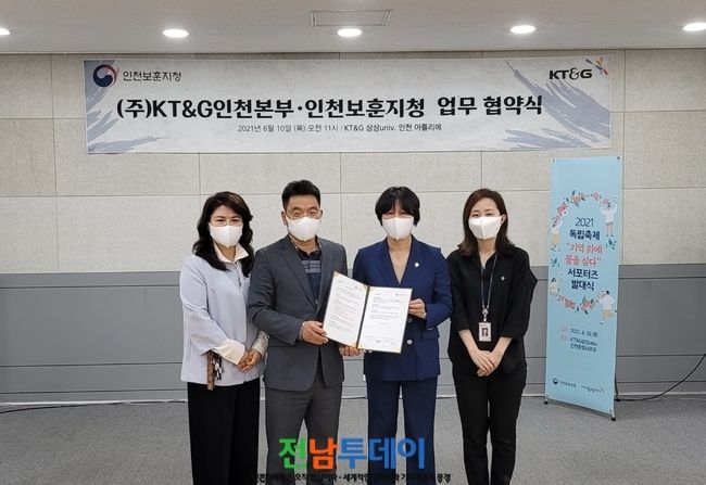 [전남투데이 윤진성 기자]국가보훈처 인천보훈지청(지청장 박현숙)은 6월 10일(목) KT&G 인천본부(본부장 조남웅)와 ‘보훈선양 업무 활성화’를 위해 업무협약을 체결했다고 밝혔다.