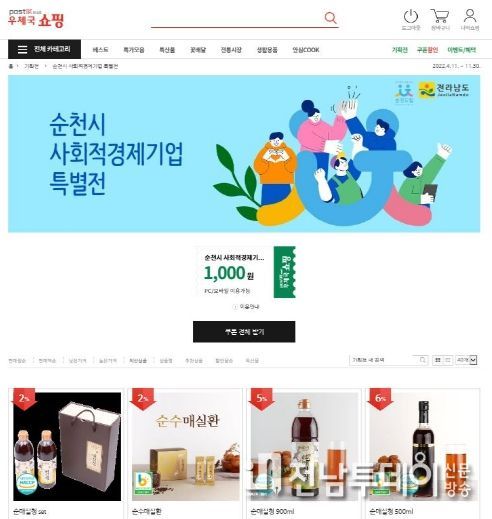 전남투데이 문근미 기자 | 순천시 사회적경제기업 제품들을 우체국 쇼핑몰에서도 구입할 수 있게 됐다.