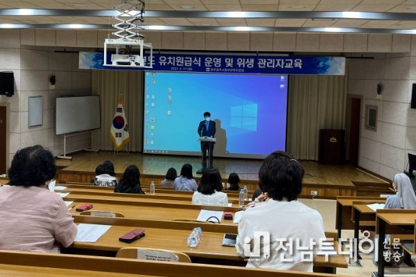 전남투데이 이정방 기자 | 광주동부교육지원청이 21일 광주교육연수원에서 관내 공·사립 유치원 원장들을 대상으로 ‘유치원급식 관계자 교육’을 실시했다.