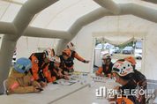 전남투데이 김완규 기자 | 해남소방서가 지난 15일 해남군수산업협동조합에서 대규모 재난 상황을 대비한 2025년 긴급구조종합훈련을 실시했다. 이번 훈련은 대규모 재난 발생 시 관계 기관 간 공조 체계를 점검하고 현장 대응 역량을 강화하기 위한 것으로, 해남군청, 해남경찰서, 해남군 보건소, 군부대, 해남수협 등 10개 기관·단체에서 총 148명이 참여했다. 훈련은 대형화재로 인해 다수의 사상자가 발생한 상황을 가정하여 훈련이 진행되었으며, 현장에서는 인명 구조와 화재 진압, 응급처치, 다수 사상자 분류 및 이송, 현장 긴급구조통제단 운영 등 전 과정이 실전처럼 전개됐다. 주요 훈련은 ▲대규모 화재 발생에 따른 화재진압 및 인명구조 ▲옥상 고립자 고가사다리차 구조 ▲공기안전매트를 활용한 대피훈련 ▲다수 사상자 발생 시 응급의료소 운영 및 이송 ▲현장지휘체계 확립 및 상황 전파 등으로 진행됐다. 또한 돌발상황으로, 건물 붕괴로 인해 구조 활동 중이던 소방대원 1명이 갇히는 상황이 부여되어 이에 즉각 신속대응구조대(RIT)가 투입, 대원들을 구조하는 훈련이 병행되어 현장의 긴박감을 더했다. 또한 드론을