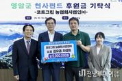 전남투데이 박상훈 기자 | 코트그린농업회사법인(주)가 13일 영암군청에 천사펀드 500만원, 고향사랑기부금 200만원을 각각 전달했다. 무이자·무담보·무보증으로 취약계층에게 생활비 등 자금을 빌려주는 영암형 사회적 금융 천사펀드는 법인이, 고향사랑기부에는 임직원이 마련한 기금을 전달했다. 김유겸 코트그린농업회사법인(주) 대표는 “영암에서 받은 사랑을 지역사회에 돌리고 싶었다. 앞으로도 기업의 사회적 책임을 다하겠다”고 말했다. 코트그린 농업회사법인(주)는 영암 군서면의 친환경 농자재 및 농축산자재 전문 제조업체로, 지역 농업의 경쟁력 강화와 지속가능한 농업 생산 기반 구축에 기여해 오고 있다.
