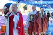 전남투데이 박동운 기자 | 전라남도 강진군 성전면 월출산 무위사(주지 법오스님)에서 지난 18일 제8회 강진 무위사 수륙대재가 성대히 봉행됐다. 수륙대재는 물과 육지에서 억울하게 죽은 이들의 넋을 위로하고 평화를 기원하는 대승불교의 대표적인 의식으로, 조선시대에는 왕실이 주관한 국가 불교의례로 자리해 왔다. 무위사는 세종대왕 시기 수륙대재가 거행된 역사적 기록을 바탕으로 2018년부터 의식을 복원해 매년 봉행하고 있다. 현재는 단순한 전통 재현을 넘어 지역을 대표하는 불교문화행사로 자리매김하고 있다. 올해 수륙대재는 전야제 공연인 창작 국악 뮤지컬 '세종의 꿈'으로 막을 열었다. 10월 17일 무위사 대적광전 특설무대에서 진행된 이 공연은 세종대왕과 소헌왕후가 백성과 충신들의 넋을 위로하는 이야기를 중심으로 구성됐으며 박기량 총연출과 국립남도국악원 사물단의 참여로 완성도를 더했으며 관객들의 뜨거운 호응을 얻었다. 이어 18일에는 본행사인 수륙대재가 정통 절차에 따라 장엄하게 봉행됐다. 시련을 시작으로 대령, 관욕, 괘불이운, 운수상단 등 수륙재의 절차가 재현됐으