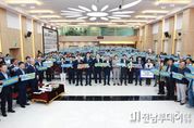 전남투데이 강영선 기자 | 화순군은 10월 2일 군청 대회의실에서 ‘농어촌 기본소득 시범사업 화순 유치 결의대회’를 열고, 시범사업 유치를 위한 강한 의지를 밝혔다. 이번 결의대회는 인구 감소와 고령화 등으로 침체된 농촌 지역에 활력을 불어넣기 위해 정부가 추진 중인 ‘농어촌 기본소득 시범사업’의 대상지로 화순군이 선정될 수 있도록 결의를 다지는 자리였다. ‘농어촌 기본소득 시범사업’은 전국 69개 인구감소지역 중 6개 군을 선정해 2026년부터 2년간 해당 지역 주민 모두에게 매월 15만 원의 기본소득을 지급하는 정책이다. 결의대회에는 구복규 화순군수, 오형열 군의회 의장을 포함한 군의원 10명이 참석해 피켓을 들고 화순군의 적극적인 참여 의지를 나타냈다. 또한 화순군 농촌지도자회 회원 20여 명과 군청 직원 250여 명도 미니 현수막을 펼쳐 보이며 시범사업 유치에 대한 강한 의지를 나타냈다. 행사 말미에는 참석자 전원이 ‘농어촌 기본소득 시범사업은 화순으로’를 힘차게 외치며, 화순군민의 단합된 염원과 결의를 다시 한번 확인했다. 구복규 군수는 “침체된 농촌에 활력을 불어