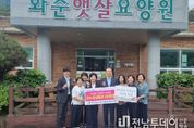 전남투데이 강영선 기자 | 화순군은 지난 24일 추석 명절을 맞이하여 한국농수산식품유통공사(사장 홍문표)에서 관내 노인복지시설에 100만 원 상당의 온누리상품권을 기부했다고 밝혔다. 한국농수산식품유통공사는 1967년 농어촌개발공사로 발족하여 2012년 한국농수산식품유통공사로 사명을 변경하고, 우리 농업의 성장 동력이 될 농수산식품산업 지원 기능을 대폭 강화하는 등 차별화·전문화된 기관이다. 한국농수산식품유통공사는 명절을 맞이하여 관내 노인복지시설을 찾아 온누리상품권을 전달하고, 어르신들과 인사를 나누며 따뜻한 마음을 전했다. 전종화 상임감사는 “명절이 다가오면 들뜬 마음이 들고, 가족을 기다리게 된다. 그런 마음을 누구보다 더 잘 알기에 어르신들을 찾아뵈러 왔다. 앞으로 우리 기관은 농업의 새로운 가치를 창출하고, 기업의 사회적 책임을 성실히 이행하여 명절에 찾아오는 가족처럼 신뢰와 사랑을 받는 공사로 거듭나겠다.”라고 말했다. 허선심 사회복지과장은 “명절은 누구에게나 특별한 날이다. 그 누구도 명절을 외롭게 보내지 않기를 바란다”라며, “어르신들을 위해 잠시나마 특별한 시간을 선물해 주신 전종화