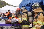 전남투데이 김용희 기자 | 전라남도소방본부는 12일 여수 소노캄 호텔 일원에서 대규모 지진 상황을 가정한 ‘2025년 국가단위 긴급구조종합훈련’을 진행, 65개 유관기관과의 현장 중심 협업체계를 점검했다. 소방청과 전남도소방본부는 이날 규모 7.5의 지진으로 건물과 거북선대교가 붕괴되고, 선박 화재와 산불 등 동시다발적 화재와 폭발이 발생하는 복합 재난 상황을 가정해 실전과 같은 훈련을 펼쳤다. 소방청이 주관하고 전남도소방본부가 주최한 이번 훈련은 지진 등 대형 복합재난 발생 시 유관기관 간 긴급구조 대응 역량을 강화하고, 현장 중심의 통합지휘체계 확립을 위한 국가 차원의 종합훈련이다. 행정안전부, 산림청, 국방부를 비롯해 전국 10개 시·도 소방본부 등 총 65개 기관에서 1천500여 명이 참여했으며, 헬기, 대용량방사시스템 등 200여 대의 각종 장비도 투입돼 대규모 협업 대응 체계를 점검했다. 훈련 상황은 여수 오동도 해상 인근에서 발생한 규모 7.5의 강진으로 여수 일대에 광범위한 피해가 발생하고, 이에 따라 총 623명이 넘는 사상자가 발생한 것으로 설정됐다. 특히 구조·구급,