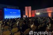 전남투데이 손영욱 기자 | 전라남도와 광양시가 공동 주최하고 (사)전남영상위원회가 주관하는 남도영화제 시즌2 광양이 ‘빛과 철로 물들다!’를 주제로 성황리에 개막, 광양시 전역에서 다양한 상영과 부대행사를 펼치며 본격적인 일정에 돌입했다. 특히 지난 24일 저녁 광양항 컨테이너 특별관에서 천만 관객을 사로잡은 영화 ‘서울의 봄’ 상영과 함께 토크 콘서트가 열리며 영화제의 열기를 더했다. 이번 영화제에서는 공업도시이자 해운물류도시인 광양의 정체성을 살려, 실제 수출용 컨테이너를 쌓아 만든 특별 상영관을 선보였다. 컨테이너 특별관은 산업 공간을 영화의 무대로 바꾼 독창적 시도로, 색색의 컨테이너와 가을 하늘이 어우러진 풍경 자체가 하나의 거대한 스크린처럼 펼쳐져 관객들에게 색다른 몰입감을 선사했다. 상영작 ‘서울의 봄’은 바로 이곳 광양항 세트에서 영화 장면 중 국제시장 거리, 30경비단 입구, 최규하 대통령 취임식, 세종로 대치 등을 촬영한 작품으로, 촬영지를 다시 찾은 이번 행사는 한층 특별한 의미를 더했다. 영화 상영 후에는 김성수 감독과 배우 이성민·김성균·박훈이 무대에 올라 작품의