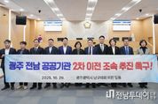 전남투데이 정홍균 기자 | 광주광역시 남구의회는 29일 성명서를 통해 정부의 공공기관 2차 지방 이전을 앞두고 광주․전남 지역의 초광역 협력을 통한 공공기관 유치를 촉구했다. 성명서를 대표 발표한 신종혁 의원은 “현재 광주시와 전라남도가 AI와 에너지 산업을 중심으로 한 공공기관 2차 지방 이전 유치에 적극 나서고 있다”며, “기존 1차 혁신도시의 한계를 극복하기 위해 유관기관의 선제적 이전을 통해 산·학·연 클러스터 조성 및 자족도시 기능을 강화해야 한다”고 주장했다. 특히, “AI·에너지·농생명 산업을 결합한 초광역 메가시티 구상과 연계해 한국농어촌공사, 한국농수산식품유통공사(aT) 등 수도권 소재 기관의 이전이 필요하다”면서 “광주 남구의 재생에너지 특화산업단지 설치와 맞물려 관련 공공기관 이전이 반드시 추진되어야 한다”고 강조했다. 아울러, 교육‧의료‧문화 등 정주 여건 개선을 위한 특별재정을 확보하고 에너지 산업 관련 기업유치 전략도 병행되어야 한다고 덧붙였다. “공공기관 2차 이전은 국가균형발전 전략 ‘5극 3특’의 성패를 좌우할 핵심과제”라며, 이에 남구의회 의원 일동은 정부와 관계 당