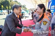 전남투데이 정홍균 기자 | 광주광역시 소방안전본부는 28일 남구 효천물빛노닐터 운동장에서 ‘제36회 의용소방대 소방기술경연 및 한마음체육행사’를 개최했다. 이번 행사는 의용소방대원의 소방기술 숙련도 향상과 봉사정신 함양, 소방가족 간 화합과 단결을 강화하기 위한 자리로 마련됐다. 이날 행사에는 의용소방대원 700여명과 소방공무원 60여명, 내빈 40여명 등 800여 명이 참석해 성황을 이뤘다. 행사에 앞서 광주소방악대의 축하 공연으로 식전 분위기를 달궜으며, 개회식에서는 모범의용소방대원 20명에게 표창이 수여됐다. 강기정 시장은 “시민의 안전을 위해 헌신하는 의용소방대원 여러분께 깊이 감사드린다”며 “의용소방대의 봉사와 열정이 광주의 안전을 지키는 큰 힘이다. 광주시는 의용소방대의 자긍심과 역량 강화를 위해 적극 지원하겠다”고 말했다. 의용소방대 소방기술경연에서는 2025년 전국소방기술경연대회에 참가한 3개팀이 소방호스 전개 및 회수, 심폐소생술 등 뛰어난 소방기술을 선보였다. 또 풍선기둥탑 쌓기, 단체줄넘기, 에어봉 릴레이 등 다양한 한마음 체육행사가 이어져 대원 간 화합