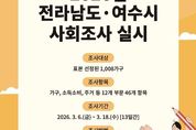전남투데이 조평훈 기자 | 여수시는 3월 6일부터 3월 18일까지 13일간 ‘2026년 전라남도·여수시 사회조사’를 실시한다고 밝혔다. 사회조사는 매년 시민들의 주관적 의식과 사회적 관심사, 정책 수요 등을 파악해 신규 정책 개발과 각종 연구의 기초자료로 활용하기 위한 통계조사다. 이번 조사는 여수시에 거주하는 만 15세 이상 가구주·가구원을 대상으로 하며, 표본으로 선정된 1,008가구를 대상으로 진행한다. 조사 내용은 가구·가족, 소득·소비, 노동, 환경, 안전 등 총 12개 부문이다. 조사항목은 전라남도 공통항목 30문항과 여수시 특성항목 16문항으로 구성되며, 전라남도와 도내 22개 시군이 공동으로 실시한다. 조사 대상 가구에는 조사원이 직접 방문해 면접 조사하거나, 조사표를 배부해 응답자가 직접 작성하면 우편함 등을 통해 회수하는 방식으로 진행된다. 조사 결과는 집계·분석 작업을 거친 후 오는 8월 중 공표되며 여수시의 정책 방향 설정과 결정 과정에서 중요한 기초자료로 활용될 예정이다. 시 관계자는 “사회조사 결과는 '통계법' 제33조에 따라 엄격히 보호되며 통계작