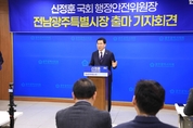 전남투데이 김윤걸 기자 | 국회 행정안전위원장으로 통합법을 이끈 신정훈 위원장이 전남광주특별시 초대 시장 출마를 공식 선언했다. 신 의원은 “통합법 통과는 완성이 아니라 새로운 시작”이라며, “전남광주특별시를 중앙의 지시를 수행하는 하위 단위를 넘어 스스로 결정하고 책임지는 ‘준연방제 수준의 분권형 자치정부’를 만들겠다”는 포부를 밝혔다. 신정훈 의원은 3일 오후 3시 광주광역시의회 기자실에서 출마 선언을 발표하고, 5·18 민주묘역을 방문해 출마의 입장을 광주 영령들에게 고했다. 기자회견에서 신위원장은 지난 3월 1일 통합특별법 통과가 가지는 역사적 의미를 강조했다. 그는 “전남도청 이전 반대 현장에서부터 통합의 필요성을 외쳐온 사람으로서 벅찬 책임감을 느낀다”고 말했다. 신 위원장은 출마 선언의 일성으로 “정치발전 없는 전남광주특별시의 발전은 없습니다. 특별시는 소멸 위기를 살리는 약이 아니라, 잠시 연장해주는 조치라는 인식이 있어야 합니다.”며, “통합이 단순한 행정구역 결합이나 중앙 권한의 광역 이전에 머물러선 안 된다”고 말했다. “광역의 권한을 다시 시·군·구 기초정부로, 궁극적으로는 시민에게 돌려주는 구조를 행정으로 완성하겠다”고 밝혔다. ❍ 신