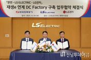 전남투데이 손영욱 기자 | 한국전력이 LS ELECTRIC, LG전자와 재생에너지 발전원을 활용한 DC Factory 구축을 통해 차세대 전력망 혁신에 본격적으로 나선다. 한전은 9월24일 LS ELECTRIC 천안사업장에서 LS ELECTRIC, LG전자와 ‘재생에너지 연계 DC Factory 구축’을 위한 업무협약(MOU)을 체결했다. 이번 협약은 K-DC Alliance의 핵심 실증사업이자, ‘한국형 차세대 전력망’ 구축의 일환으로 추진됐다. 이번에 구축되는 DC Factory는 태양광과 ESS로 이루어진 DC 전원을 DC 전력망을 통해 냉난방 설비, 전기차 충전기, 산업용 인버터 등 다양한 DC 설비에 공급하는 구조이며, 이는 전원-망-부하를 DC로 통합한 국내 최초의 실증모델이다. 한전은 DC 설비에 대한 KC 인증과 고효율 인증 등 보급 확대를 위한 제도적 기반을 마련하고, LS ELECTRIC은 DC 전원부터 공급시스템 등 DC Factory의 전체 시스템을 구축한다. LG전자는 DC 냉난방기의 개발, 제작, 공급을 맡는다. 이번 협력은 전력사-전력기기사-가전사 대표기업이 각자의 전문
