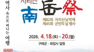 전남투데이 강길수 기자 | 전남 구례군은 오는 4월 18일부터 20일까지 3일간 남악사, 화엄사 시설지구, 공설운동장 일원에서'제82회 지리산남악제 및 제45회 군민의 날 행사'를 개최한다고 밝혔다.
