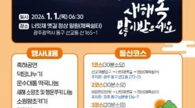 전남투데이 김경민 기자 | 광주 동구는 2026년 병오년 새해를 맞아 1월1일 오전 7시 너릿재 옛길 정상(체육쉼터)에서 해맞이 행사와 함께 방문객에게 떡국을 나누는 ‘2026년 병오년 해맞이 떡국나눔 행사’를 개최한다고 밝혔다.