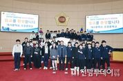 전남투데이 김용희 기자 | 전라남도의회 차영수 의원(더불어민주당, 강진)은 12월 11일 전라남도의회 본회의장에서 열린 2025년 제26회 '청소년 의회교실'에 참석해 학생 52명을 대상으로 도의원 역할과 지방의회 기능을 설명하고, “청소년이 안전하고 활기가 넘치는 지역사회를 만드는 일이 가장 중요한 과제”라고 강조했다. 이날 청소년 의회교실에는 고흥 대서중학교 27명, 강진 도암중학교 25명 등 총 52명의 학생이 참여해 △입교식 △도의원과의 대화 △본회의 안건 처리(조례안 찬반토론) △3분 자유발언 △퀴즈교실 △수료식 순으로 진행됐다. 학생들은 본회의장 의원석에 앉아 의장선출, 집회보고, 표결 절차 등을 직접 체험하며 ‘1일 도의원’으로서 지방의회 운영 과정을 생생하게 익혔다. 차영수 의원은 환영 인사에서 “오늘 이 자리는 여러분 한 사람 한 사람이 전남의 내일을 어떻게 바꿀 수 있는지 직접 느껴 보는 시간”이라며 “의원석에 앉아 나누는 여러분의 한마디, 한 가지 아이디어가 고흥과 강진 그리고 전라남도를 더 나은 곳으로 만드는 씨앗이 될 것”이라고 청소년들을 격려했다. 이어진 ‘도의원과의 대화’