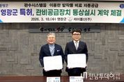 전남투데이 박세훈 기자 | 영광군은 지난 18일 전북 군산시에 위치한 재이물산(주)과 ‘관비공급장치’ 특허에 대한 통상실시권 계약을 체결했다고 밝혔다. 관비공급장치는 농작물 재배에 사용되는 스프링클러, 분사호스, 점적호스 등에 간단히 연결해 비료를 공급할 수 있는 장치다. 영광군농업기술센터 김경현 인력육성팀장이 별도의 대규모 설비 없이도 관비 작업이 가능하도록 개발한 특허기술이다. 영광군은 관비공급장치의 수요를 우리나라 농업인구의 1% ~ 10%(2만명 ~ 20만명)정도로 예상하고 있으며, 그에 따른 매출은 100억원 ~ 1,000억원, 로열티는 6 ~ 60억원이 될 전망이다. 특히 이 장치는 작물 생육 기간 중 이뤄지는 웃거름 작업에 필요한 노동력을 크게 줄여줄 것으로 기대된다. 스프링클러 10~30개당 1대만 설치하면 효율적으로 비료를 공급할 수 있어, 설치비 부담은 낮추고 작업 효율은 높일 수 있다는 점이 장점이다. 영광군농업기술센터는 2026년 신기술시범사업(7개소)으로 사업비 2,100만 원을 반영해 관비공급장치시범사업을 추진하고 있으며, 관비공급장치 사용에 관한