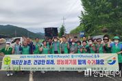 전남투데이 김용희 기자 | 장흥군새마을회(회장 김일진)는 9월 9일 장흥공설운동장 주차장 광장에서 농촌 토양 보존과 환경 보호를 위한 ‘폐농약병·폐농약봉지 수거 활동’을 실시했다. 이번 활동은 장흥군새마을회가 추진 중인 탄소중립 실천 읍·면 순회교육과 연계해 진행돼 의미를 더했다. 이날 행사에는 새마을지도자장흥군협의회(회장 이병모), 장흥군새마을부녀회(회장 전순란) 등 40여 명의 새마을지도자가 참여하여 각 마을에서 모은 영농폐자재를 집중 수거하고 재질별로 분류·매각했다. 그 결과 폐자원 총 5,200kg을 수거했으며, 환가액은 약 800만 원에 달했다. 특히 이번에 마련된 수익금은 전액을 각 읍·면 새마을회에 전달하여 홀몸 어르신 밑반찬 지원, 소규모 집수리, 재능나눔 봉사 등 주민 생활에 직접 도움이 되는 복지와 나눔 사업으로 이어지게 된다. 이를 통해 주민들이 체감할 수 있는 실질적인 혜택을 제공하며, 마을 단위의 공동체 활력 증진에도 기여할 전망이다. 현장에서는 탄소중립 실천 교육도 함께 진행되어 주민들에게 영농폐기물의 올바른 분리·배출 방법과 생활 속 탄소중립 실천 방안을 알리며, 작은 실천이 큰 변화