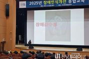 전남투데이 정홍균 기자 | 곡성군은 지난 4일 곡성 레저문화센터 동악아트홀에서 공무원과 기간제 근로자 등 300여 명을 대상으로‘2025년 장애인식개선 통합교육’을 실시했다고 전했다. 장애인식개선 교육은 ‘장애인복지법’제25조에 따라 연 1회 이상 이수해야 하는 법정 의무교육으로, 공무원이 장애에 대한 올바른 인식을 갖추고 차별 없는 포용적 직장 문화를 실현하기 위해 추진됐다. 이번 교육은 보건복지부·고용노동부 지정 교육기관인 사이영사회적협동조합 소속 강세웅 전문 강사가 맡았다. 주요 내용은 장애유형별 특징과 올바른 에티켓, 장애인에 대한 존중과 배려 등의 내용으로 구성됐다. 한편, 군은 이번 교육에 참석하지 못한 직원들을 위해 향후 온라인교육도 운영할 계획이다. 정기적인 장애인식개선 교육을 통해 장애인에 대한 편견을 해소하고 올바른 소통 방법 등 포용적 조직 문화를 확산시킨다는 방침이다. 조상래 곡성군수는 “이번 교육이 공직자의 인권 감수성을 향상하고 장애 대응 역량을 강화하는 계기가 되길 바란다”라며, “장애인과 비장애인이 함께 어울리는 포용적 조직 문화를 정착시키기 위