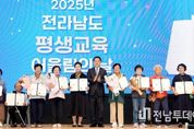 전남투데이 손영욱 기자 | 전라남도는 17일 화순 하니움문화스포츠센터에서 ‘2025 전라남도 평생교육 어울림의 날’ 행사를 열고, 평생교육에 참여한 학습자들의 성취를 격려하며 평생학습 문화를 확산하는 뜻깊은 자리를 가졌다고 밝혔다. 이날 행사에는 김영록 전남도지사, 황성환 전남도교육청 부교육감, 구복규 화순군수, 류기준·임지락·오미화 전남도의원 등 주요 내빈을 비롯해 평생교육 학습자, 문해교육 시화전 수상자, 도민 등 700여 명이 참석했다. 행사는 ‘배움의 성취를 함께 나누는 평생학습의 장’으로 평생교육 학습자 간 교류와 화합을 통해 평생학습의 가치를 공유하기 위해 마련됐다. 개회식에서는 ‘평생학습으로 열어가는 전남 인재육성의 길’이라는 영상을 통해 전남인재육성 정책을 소개하고, 도지사상·도의장상·교육감상 등 평생교육과 문해교육 분야에서 우수한 성과를 거둔 총 30명에 대한 시상식이 진행됐다. 이어 평생학습자들은 ‘평생학습으로 밝히는 전남의 미래’를 주제로 희망의 불빛을 함께 밝히는 퍼포먼스를 펼치며, 평생교육을 통해 도민 모두가 함께 성장하는 전남을 만들어가겠다는 의지를 다졌다. 평