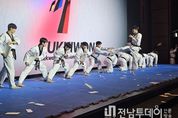 전남투데이 박세훈 기자 | 국기원 태권도시범단이 ‘국제경찰청장회의’에서 시범공연을 선보여 박수갈채를 받았다. 시범단은 지난 10월 21일 오후 7시 여의도 콘래드 호텔에서 열린 ‘제5회 국제경찰청장회의’ 만찬 행사에서 세계 30여 개국 경찰청장 및 국제기구(인터폴, 유로폴, 아세아나폴) 대표들이 참석한 가운데 시범공연을 펼쳤다. 시범단이 참여한 ‘국제경찰청장회의’는 국가 간의 범죄 대응을 위한 협력 방안을 위해 세계 경찰청장 및 국제기구 대표들이 모이는 자리이다. 시범단은 ‘평화와 연대’의 메시지를 담은 품새와 격파, 고난도 기술 발차기 등을 선보이며 문화의 장벽을 넘어선 정서적 공감을 끌어냈다. 이번 시범공연은 윤웅석 국기원장의 취임 이후 선보인 첫 시범으로 단순한 태권도 공연을 넘어, 글로벌 경찰 리더들과 네트워킹 및 문화적 소통에 중추적인 역할을 했다. 윤웅석 국기원장은 “세계 경찰청장들 앞에서 태권도 시범을 선보일 수 있게 돼 뜻깊은 시간이었다”며 “태권도가 민간외교 역할을 톡톡히 수행할 수 있도록 더욱 노력하겠다”고 전했다. 시범단은 세계 무대를 대상으로 태권도가