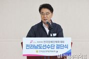 전남투데이 손영욱 기자 | 전라남도의회 김태균 의장은 10월 20일 전남체육회관에서 열린 제45회 전국장애인체전 전남선수단 결단식에 참석했다. 이날 결단식에는 강위원 경제부지사와 김대중 도교육감을 비롯해 선수단과 임원 등 250여 명이 참석했으며 참가계획 보고, 선수단기 수여 및 선수대표 선서 순으로 진행됐다. 김태균 의장은 축사에서 “장애를 넘고 자신과의 싸움을 이겨낸 선수들의 노력이야말로 그 어떤 메달보다 값지고 빛나는 승리의 상징이다.”며 “올해 대회에서도 전남선수단이 감동의 역사를 써나갈 것이라 믿는다.”고 말했다. 이어 “도전은 실패의 반대말이 아니라, 성장의 또 다른 이름이다.”며 “선수들 모두 부상 없는 경기, 선의의 경쟁으로 마지막 순간까지 최선을 다해 주시길 부탁드린다.”고 강조했다. 한편, 제45회 전국장애인체전은 10월 31일부터 11월 5일까지 부산광역시 일원에서 개최된다. 17개 시·도 6,100여 명의 선수들이 참가하며 전남은 30개 종목에 400여 명의 선수가 참가한다.