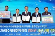 전남투데이 조평훈 기자 | (재)2026여수세계섬박람회조직위원회는 지난 20일 서울 종로구 HW컨벤션센터에서 광주전남시도민회와 ‘2026여수세계섬박람회 입장권 5,000매 구매약정’을 체결했다고 밝혔다. 이날 약정식은 조직위원장 김영록 전남도지사와 광주전남시도민회 양광용 회장을 비롯해 향우임원 600여 명이 참석한 가운데 진행됐다. 이번 구매약정은 지난해 체결한 조직위와 광주전남시도민회 간 업무협약에 따른 결실로, 협약 이후 실제 참여와 실천으로 이어진 대규모 구매 사례다. 광주전남시도민회는 1955년 출범한 국내 최대 규모의 향우단체로, 광주광역시와 전라남도 22개 시·군 향우회로 구성돼 있으며, 약 500만 명에 이르는 출향민 네트워크를 보유하고 있다. 이번 구매약정은 이러한 조직력을 바탕으로 섬박람회 참여 붐을 확산시키는 계기가 될 것으로 기대된다. 양광용 광주전남시도민회 회장은 “섬박람회는 고향 전남과 여수의 미래 가치를 세계에 알리는 뜻깊은 행사”라며 “업무협약에 그치지 않고 실제 참여로 이어지는 모범 사례를 만들어 출향민들이 앞장서 섬박람회 성공 개최를 지원하겠다”고 말했다.
