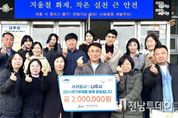 전남투데이 김윤걸 기자 | 전라남도 나주시는 지난 17일 나주시 세무과와 제주특별자치도 서귀포시 세무과 직원들이 고향사랑기부금 상호 교차 기부에 동참했다고 밝혔다. 이날 기탁식에는 나주시 김경숙 세무과장과 서귀포시 오경수 세무과장을 비롯해 상호 교차 기부에 참여한 직원들이 참석했으며 행정적 협력 차원과 더불어 지역 사회를 위한 진정성 있는 나눔을 실천하는 자리를 마련했다. 서귀포시 오경수 세무과장은 “세무 행정에 관해 적극적으로 교류하고, 상호 지역 간의 연대를 위해 고향사랑기부제 교차 기부를 하게 됐다”고 밝혔다. 나주시 김경숙 세무과장은 “고향사랑기부를 통해 좋은 인연을 맺게 됐다. 이번 상호 기탁을 계기로 지역 간 교류와 상생이 지속되길 바란다”고 말했다.