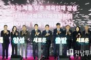 전남투데이 김용희 기자 | 전라남도는 11일 대한체육회가 장흥에 대한민국 체육인재개발원 개원식을 개최하고 본격적인 운영을 시작했다고 밝혔다. 행사에는 김영록 전남도지사, 유승민 대한체육회장과 체육계 주요인사, 전남도·시군 체육회 관계자 등이 참석해 대한민국 스포츠 미래의 요람으로서 첫 걸음을 축하하고 비전을 응원했다. 대한민국 체육인재개발원은 대한체육회에서 2020년 부지 선정을 전국 공모방식으로 추진해 장흥군에서 유치했다. 장흥 부산면 지천길 52-25 일원에 총사업비 415억 원을 들여 교육시설, 숙박시설, 실내체육관 등 체육인 교육을 위한 종합단지로 대한민국 유일의 체육인 종합 교육 기반이 마련됐다. 체육인재개발원은 향후 국내 체육인의 교육과 역량 강화를 위한 중추적 역할을 하며 대한민국 체육의 새로운 100년을 이끌 예정이다. 다양한 체육인 교육은 전국 체육인의 교류와 정보교환으로 전남 체육 발전에 기여하고, 타 지역 체육인의 매력적 전남 관광지 방문 기회 확대로 지역 경제 활성화에 도움이 될 것으로 기대된다. 전남도 관계자는 “대한민국 체육인재개발원이 스포츠 인재를