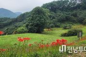 전남투데이 조평훈 기자 | 광양시는 해발 1,222m 백운산 자락에 둥지를 튼 옥룡사 동백나무숲과 백운산자연휴양림이 가을의 전령사인 꽃무릇으로 붉게 물들어 가고 있다고 밝혔다. 전남 으뜸 숲의 하나인 옥룡사 동백나무숲은 옥룡사 터와 빽빽하게 들어선 1만여 그루 동백나무가 비움과 채움의 미학을 실현한 공간으로 내면을 응시하기에 적합한 곳이다. 동백나무숲 아래 붉은 물결처럼 일렁이는 꽃무릇 군락은 짙은 초록빛으로 반짝이는 동백나무 이파리와 보색 대비를 이루며 신비감과 생동감을 자아낸다. 옥룡사는 선각국사 도선이 35년간 머물며 제자를 양성하고 입적한 불교 성지로 비보풍수를 강조한 도선이 땅의 기운을 북돋우기 위해 동백나무숲을 조성했다고 전해진다. 사찰은 1878년 화재로 소실되고 몇 개의 주춧돌로 남았지만, 굵은 나이테를 자랑하는 동백나무들은 해마다 봄이면 검붉은 동백꽃을 토해내며 천년 역사를 이어가고 있다. 특히, 남부지방 사찰 숲의 원형이라는 학술 가치와 아름다운 경관을 높이 인정받으며 천연기념물(제489호)로 지정, 보호되고 있다. 전국 최대 규모를 자랑하는 옥룡사 동백나