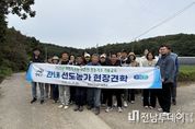 전남투데이 박세훈 기자 | 영광군은 지난 21일 하반기 귀농․귀촌인 영농기초 기술교육 교육생을 대상으로 관내 현장 견학을 실시했다. 교육생들은 '2024년 채소분야 전라남도 유기농 명인'으로 지정된 백수읍 소재의 친환경 채소 재배 농가(나눔농장)를 방문하여 미생물 농법, 퇴비 활용 등 유기농 재배법(고추, 상추, 대파, 작두콩) 등을 배우며 지속가능한 농업에 대한 이해를 높였다. 또한, 묘량면 소재의 비트 재배 농가(영광이레) 견학을 통해 작목 선택, 재배 기술(비트, 단호박, 초석잠)의 노하우를 들으며 세척․절단․건조 및 착즙 등의 공정 및 제품 포장 과정도 둘러봄으로써 가공․유통의 중요성에 대해 알게 되는 소중한 시간을 가졌다. 교육에 참여한 한 교육생은 “단순한 농가 방문이 아닌 귀농․귀촌의 전 과정을 선배 농가의 사례를 통해 몸소 배울 수 있는 기회였다”라며, “초보 농업인에게 큰 도움이 되는 시간이었다.”라고 말했다. 고윤자 농업기술센터 소장은 “귀농․귀촌인의 맞춤형 지원 프로그램 및 체계적인 교육을 통해 신규 농업인으로써 안정적으로 정착하고 지역 농업 발전에 기여할 수 있도록 돕겠다”라고