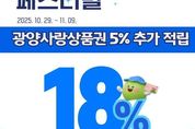 전남투데이 조평훈 기자 | 광양시는 전국 단위 소비진작 행사인 ‘코리아 그랜드 페스티벌(Korea Grand Festival)’ 기간(2025. 10. 29.~11. 9.) 동안 광양사랑상품권 할인율을 한시적으로 18%로 상향한다고 밝혔다. ‘코리아 그랜드 페스티벌’은 국무조정실, 기획재정부, 행정안전부, 산업통상자원부와 행정안전부, 문화체육관광부 등 관계 부처가 공동으로 추진하는 국가대표 소비축제다. 행사 기간에는 △지역사랑상품권 및 디지털온누리상품권 특별할인 △상생소비복권 (20억 원 규모) 신규 시행 △농·축·수산물·생필품 특별할인 △숙박쿠폰 발급 및 문화유산 무료 개방 등 국민 누구나 참여할 수 있는 다양한 소비 혜택이 제공된다. 이 기간 광양시는 총 40억 원 규모의 광양사랑상품권을 발행하며, 기본 13% 후(後) 캐시백에 5%를 추가해 총 18% 혜택(월 최대 12만 6천 원 적립)을 제공한다. 단, 예산 소진 시 조기 종료될 수 있으며 행사 종료 후에는 기존 13% 할인율로 조정된다. 시는 이번 특별할인을 통해 시민들이 실질적인 소비 혜택을 누리고, 지역 내 자금의 선순환이