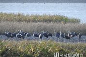 전남투데이 조평훈 기자 | 순천시는 지난해보다 하루 늦은 10월 22일 오후 3시에 천연기념물 제228호이자 세계자연보전연맹(IUCN) 적색목록 ‘취약종(Vulnerable)’으로 지정된 흑두루미 73마리가 순천만에 도착했다고 밝혔다. 앞서 지난 20일 순천만 상공을 선회했던 흑두루미 9마리는 남하해 21일 일본 이즈미에 도착한 것으로 확인됐다. 흑두루미는 매년 10월 중순부터 이듬해 3월까지 순천만에서 월동하는 국제적 보호종으로, 전 세계 개체수의 절반에 해당하는 약 7,600여 마리가 순천만을 찾으며, 순천만은 세계적인 흑두루미 월동지로 자리매김했다. 특히 지난해에는 경계심이 높던 흑두루미가 사람과의 신뢰를 쌓으며, 불과 20m 거리까지 가까이에서도 관찰될 만큼 인간과의 관계가 한층 가까워졌다. 시는 2009년부터 62ha 규모의 ‘흑두루미 희망농업단지’를 조성해 안정적인 서식지를 확보해왔다. 여기에 더해 2026년까지 안풍들 일대의 전봇대 49본을 철거하고 환경저해시설 없는 서식지 50ha를 추가 조성할 계획이다. 또한 오는 12월에는 흑두루미에 위치추적기를 부착해 행