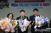 전남투데이 손영욱 기자 | 목포소방서는 9월 23일 오전 11시 목포소방서 3층 대회의실에서 목포시 의용소방대 남·여 연합회장 이‧취임식을 개최했다. 이날 행사에는 김용호 목포소방서장을 비롯해 목포시의장, 목포시 관계자, 도·시의원, 시·군 연합회장, 의용소방대원 등 150여명이 참석해 성황을 이뤘다. 행사는 국민의례, 유공대원 표창과 공로패 전달, 임명장 수여, 이·취임사, 축사 등의 순서로 진행됐다. 이임하는 박정태 회장(53세)은 12년 9개월간 대원으로, 2년간 연합회장으로 봉사하며 화재 예방과 시민 안전을 위해 다양한 활동을 이끌어온 공로로 감사와 격려의 박수를 받았다. 새로 취임한 박창우 남성회장(61세)은 2008년도부터 꾸준히 활동하며 의용소방대 발전에 힘써왔으며, 한미순 여성회장(58세) 2017년 대원으로 참여해 헌신적인 봉사활동을 펼쳐왔다. 박창우 신임 남성회장은 “앞으로 연합회를 더욱 화합과 단결로 이끌고, 변화하는 재난 환경에 맞춰 전문성을 강화해 시민의 생명과 재산을 지키는 데 최선을 다하겠다”고 말했다. 한미순 신임 여성회장은 “의용소방대가 시민 곁에서 가장