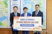 전남투데이 손영욱 기자 | 목포시는 지난 23일, 씨월드고속훼리(주)(회장 이혁영)가 저소득 세대와 복지사각지대 위기가구를 돕기 위해 이웃사랑 성금 3천만 원을 전남사회복지공동모금회를 통해 기탁했다고 밝혔다. 1998년 창립한 씨월드고속훼리는 제주항로 활성화와 운항관리 개발에 앞장서 온 국내 최대 연안 여객선사로, 불우이웃 성금 기탁, 장학금 및 발전기금 지원 등 꾸준한 사회공헌활동을 이어오며 지역사회와 함께 성장해왔다. 이혁영 회장은 “추석을 맞아 어려움을 겪는 이웃들이 건강하고 따뜻한 명절을 보내시길 바라는 마음으로 성금을 전달했다”며 “앞으로도 봉사와 나눔을 꾸준히 실천하겠다”고 말했다. 시 관계자는 “매년 이웃사랑을 실천해 주시는 씨월드고속훼리에 깊이 감사드린다”며 “기업의 따뜻한 마음을 소외된 이웃에게 잘 전달해 지역사회 복지 향상에 힘쓰겠다”고 전했다.