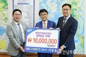 전남투데이 손영욱 기자 | 목포시는 지난 23일, 씨월드고속훼리(주)(대표 이종훈)가 (재)목포인재육성재단에 지역 우수 인재 양성을 위한 장학금 1천만 원을 기탁했다고 밝혔다. 씨월드고속훼리(주)는 목포–제주, 진도–제주 구간 등을 운항하는 지역 대표 여객사로, 장학금 기탁과 취약계층 성금 지원 등 사회적 책임을 실천하며 지역사회 공헌에 앞장서고 있다. 지난해에도 이종훈 대표는 목포인재육성재단에 2천만 원을 기탁했다. 이종훈 대표는 “지역사회와 함께 성장해온 기업으로서 우리 지역 청년들이 꿈과 희망을 키워가길 바라는 마음에서 장학금을 기탁하게 됐다”며 “재단 이사로서 앞으로도 지역 인재 양성을 위한 다양한 지원 활동을 꾸준히 이어가겠다”고 밝혔다. 조석훈 목포인재육성재단 이사장(목포시장 권한대행)은 “지역 인재 육성을 위해 뜻깊은 기부를 해주신 씨월드고속훼리 이종훈 대표님의 지역 사랑에 깊이 감사드린다”며 “장학금은 학생들이 잠재력을 발휘할 수 있도록 인재 발굴과 지원에 소중히 사용하겠다”고 말했다.