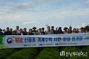 전남투데이 김길룡 기자 | 신안군은 농촌 고령화와 인건비 상승에 적극 대응하기 위해 9월 22일 자은면에서 고올레산 땅콩 신품종 기계수확 연시회를 개최했다고 밝혔다. 이날 연시회에는 땅콩 재배 농가와 국립식량과학원 관계자 등 30여 명이 참석해 신품종 특성과 함께 휴립피복기, 땅속작물수확기, 땅콩 탈협기 등 기계화 장비를 활용한 수확 과정을 직접 지켜보았다. 이번에 선보인 신품종인 해올과 케이올2호는 올레산(오메가-9) 함량이 80% 이상으로 높아 심혈관 건강에 도움이 되고, 산패에 강해 저장성과 유통성이 뛰어난 기능성 품종이다. 또한 기존 품종보다 키가 작아 쓰러짐에 강해 기계 수확에 적합해 농가의 호응을 얻고 있다. 신안군은 올해 10ha 규모의 신기술 시범단지를 조성해 안정적 땅콩 재배 기반을 마련하기 위해 휴립·피복기를 활용해 높은 이랑재배로 습해 피해를 방지하고 수확기·탈협기로 기계 수확을 추진하는 등 기계화 체계를 구축하기 위해 힘써왔다. 국립식량과학원 곽도연 원장은 “기계수확에 적합한 품종 확대는 국산 땅콩 경쟁력 강화와 농가 생산비 절감에 크게 기여할 것”이라며 “현장 맞