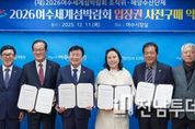 전남투데이 조평훈 기자 | (재)2026여수세계섬박람회조직위원회는 지난 11일 여수시장실에서 여수 지역 수협, 수산단체, 수산물가공업체 등 11개 기관‧단체와 섬박람회 입장권 1억 3천만원 규모의 구매약정을 체결했다고 밝혔다. 이번 약정식에는 정기명 조직위원장(여수시장)을 비롯해 여수 지역 해양수산단체 대표들이 참석했다. 참여 기관‧단체들은 입장권 구매약정을 통해 섬박람회 성공 개최에 힘을 보태기로 했다. 여수는 해양수산 산업을 기반으로 성장해 온 지역으로, 이번 구매약정은 섬과 바다의 가치 확산을 목표로 하는 섬박람회 취지와 연계된 참여다. 정기명 조직위원장은 “여수 지역 수협과 수산단체, 수산물가공업체 등 해양수산 현장에서 활동하는 기관들이 함께해 주셔서 매우 뜻깊다”며 “이번 구매약정을 계기로 지역사회와 함께하는 섬박람회를 만들어 가겠다”고 말했다. 한편, 2026여수세계섬박람회는 ‘섬, 바다와 미래를 잇다’를 주제로 전라남도와 여수시가 공동 주최하며, (재)2026여수세계섬박람회조직위원회가 주관하는 국제 행사이다. 오는 2026년 9월 5일부터 11월 4일까지 61일