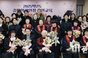 전남투데이 김경민 기자 | 광주시교육청금호평생교육관은 21일 제3평생학습실에서 ‘2025학년도 중학학력인정 성인교육 이수 및 졸업식’을 개최했다. ‘중학학력인정 성인교육’은 배움의 기회를 놓친 만학도에게 의무교육 학력 취득 기회를 제공하는 제도로 3년간의 단계별 교육과정을 수료하면 교육감 명의의 졸업장이 수여된다. 이번 행사는 졸업생들의 노력을 격려하고 배움의 결실을 가족 및 지역사회와 함께 축하하고자 마련됐다. 행사는 졸업생 13명과 가족, 교육청 관계자 등이 참석한 가운데 식전 공연을 시작으로 중학학력인정서 수여와 우수학습자 시상 등이 진행됐다. 이정선 교육감은 3년 과정을 완수한 졸업생들에게 중학학력인정서를 직접 수여하며 만학의 결실을 축하했다. 또한 현재 학업을 이어가고 있는 1·2단계 학습자 28명에게 이수증을 전달하며, 최종 학력 취득을 위한 지속적인 학업 정진을 당부했다. 한편 식전 축하 행사에서는 금호평생교육관 시민문화강좌 수강생들이 평소 갈고닦은 민요와 판소리 공연을 직접 펼쳐 그 의미를 더했다. 아울러 재학생 대표의 송사와 졸업생 대표의 답사가 이어지며 배움의 과정을