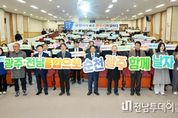 전남투데이 김경민 기자 | 광주광역시는 4일 국립순천대학교 파루홀에서 ‘광주‧전남 통합 순천시 상생토크’를 열고, 전남광주통합특별시 출범에 따른 순천 등 전남 동부권 산업발전 방안을 지역민들과 공유했다. 이날 행사는 통합특별법의 국회 통과 이후 처음 열린 상생토크이자, 전남 시군을 순회하며 진행한 일곱 번째 상생토크다. 순천 상생토크에는 강기정 광주시장과 순천지역 기업인, 광주‧전남 기업 관계자 등 200여 명이 참석했다. 강기정 광주시장은 광주전남 통합 추진 경과와 배경을 설명하며 ▲반도체산업 특화단지 지정·지원 ▲이차전지산업 육성 ▲문화·관광 인프라 구축 지원 등 특별법 내용을 전남 동부권 산업과 연계할 청사진을 발표했다. 전남 동부권은 국가기간산업의 수명주기 도래에 따른 산업 침체와 인구 감소를 겪고 있다. 경쟁력 확보를 위해서는 반도체·이차전지 등 신산업을 육성해 기존 석유화학·제철 중심의 산업구조를 다각화할 필요성이 제기된다. 강 시장은 통합특별시 출범 이후 전남 동부권 발전전략으로 ▲광주권-동부권 연계 반도체 메가벨트 조성 ▲AI·반도체 인재양성 사다리 확대 ▲이