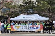 전남투데이 김경민 기자 | 광주광역시 소방안전본부는 16일 무등산국립공원 증심사지구에서 ‘광주 산불진화 의용소방대 발대식’과 함께 ‘산림화재대응 교육훈련’에 들어갔다. ‘광주 산불진화 의용소방대’는 대형산불에 대비해 산불현장에서 소방공무원의 화재진압 보조역할을 수행하기 위해 구성, 운영하고 있다. 올해 의용소방대원은 총 122명이 구성됐으며, 이들 대원 전원은 이날부터 18일까지 사흘간 무등산에서 실제 산불현장 적응·대응 능력 강화 훈련을 진행하고 있다. 이번 훈련에는 광주소방학교 훈련교관들이 직접 훈련 지휘를 맡아 교육의 전문성을 더하고 있다. 주요 교육내용은 ▲화재진압 보조역할 수행 요령 ▲등짐펌프 등을 활용한 방어선 구축방법 ▲잔화정리 및 주민대피 요령 ▲화재현장 안전관리 등이다. 광주소방본부는 산불 발생이 집중되는 3월부터 5월까지를 산불 취약시기로 보고, 산불예방 활동을 강화하는 동시에 ‘광주 산불진화 의용소방대’ 운영을 통해 초기 대응능력을 높일 계획이다. 고영국 광주소방안전본부장은 “대형산불에 대한 철저한 대응을 위해 ‘광주 산불진화 의용소방대’를 구성했다”며 “지속적인 교
