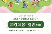 전남투데이 김경민 기자 | 광주문화재단은 오는 4월 4일 오후 2시부터 5시까지 희경루 일대에서 절기·세시 체험프로그램 '2026년 무등풍류뎐 in 희경루–2회차 ‘희경의 봄, 청명(淸明)’'을 개최한다. 이번 행사는 봄의 절기 ‘청명’을 맞아 아이와 보호자가 함께 전통문화를 체험할 수 있도록 마련됐다. 청명은 하늘이 맑아지고 땅이 따뜻해지며 만물이 새롭게 싹트는 시기다. 광주문화재단은 광주를 대표하는 역사문화 공간인 희경루에서 시민들이 봄의 생명력과 절기의 의미를 체감할 수 있도록 전통예술과 체험을 결합한 참여형 프로그램을 선보일 예정이다. 행사는 오후 2시 취타대 행렬로 시작된다. 웅장한 대취타 연주와 전통행렬이 희경루 잔디마당을 가로지르며 봄 축제의 시작을 알린다. 이어 희경루 누각에서는 국악동화구연 '남생이와 신비한 나무'가 두 차례 진행된다. 청명의 의미를 담은 전래 이야기를 가야금과 장구 선율에 맞춰 들려주는 프로그램으로, 아이들이 계절의 변화와 자연의 소중함을 친근하게 느낄 수 있도록 구성했다. 국악동화구연은 사전예약과 현장접수를 병행한다. 다양한 연령이 함께 참여할 수 있는 절기 체험 프로그램도