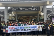 전남투데이 정홍균 기자 | 이재명 대통령과 김혜경 여사는 오늘 낮, 설 명절을 앞두고 충북 충주시에 위치한 무학시장을 찾아 지역 세밑 물가를 점검하고 상인들을 만나 현장 의견을 청취했다. 무학시장은 지난 1978년 노점상들의 정착을 위해 개설된 전통시장이며, 이번 방문은 설 민심을 청취하기 위한 민생 행보의 일환이다. 이 대통령과 김 여사는 시장 내 여러 상점을 들러 “새해 복 많이 받으세요”라며 인사를 했고, 상인과 시민들은 환호와 박수로 이 대통령 부부를 맞았다. 이 대통령 부부에게 더덕을 판매한 상인은 “덕분에 마수걸이를 한다”며 “오늘 장사가 잘될 것 같다”고 말해 웃음을 자아냈다. 다른 상인들도 “힘나게 해주셔서 감사하다”, “너무 고생 많으시다”며 인사를 전했다. 이 대통령 부부는 황태포, 시금치, 곶감과 깐밤 등 제수용품과 먹거리를 구입했고 백도라지, 마른 멸치, 배추전 등을 즉석에서 맛보기도 했다. 이 대통령 부부는 온누리상품권과 현금으로 결제했다. 김 여사가 물건을 고르는 사이 이 대통령은 상인들에게 “장사는 잘 되느냐”, “곧 설인데 어떠시냐”고 물었다. 정육점 사장은