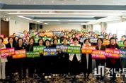 전남투데이 김용희 기자 | 전라남도는 희망찬 새해를 맞아 12일 목포 샹그리아비치관광호텔에서 도·시군 여성단체가 참석한 가운데 전남 여성단체 미래도약 출정식을 개최하고, 지역 미래와 대전환을 이끌 주체로서 역할을 다짐했다고 밝혔다. 이번 출정식은 전남 여성단체가 새해를 맞아 광주·전남 행정통합을 비롯한 지역 주요 현안에 대해 여성 주도의 비전을 선포하고, 지역사회 전반의 공감과 연대를 이끌어내기 위해 마련됐다. 행사는 도의원, 도·시군 여성단체 회원, 시장·군수 배우자 등 120여 명이 참석한 가운데 신년하례, 장학금 전달식, 결의문 낭독, 광주·전남 행정통합 퍼포먼스 순으로 진행됐다. 전남도여성단체협의회는 결의문을 통해 ▲광주·전남 행정통합 ▲성평등한 사회 조성 노력 ▲기후변화 위기 대응 실천 ▲국내·외 여성단체 교류 협력 강화 ▲자립준비청년 지원 등 지역과 사회의 지속가능한 발전을 위한 실천 의지를 밝혔다. 이날 협의회는 어려운 여건에서도 자립을 준비하며 학업과 진로에 성실히 매진하는 청년 2명에게 장학금을 전달하며 응원했다. 특히 광주·전남 행정통합을 응원하는 퍼포먼스를 통해, 여