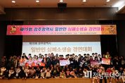 전남투데이 김경민 기자 | 광주광역시 소방안전본부는 지난 10일 오후 국립광주박물관 대강당에서 심폐소생술 시행률 향상과 생명존중 문화 확산을 위한 ‘제15회 광주광역시 일반인 심폐소생술 경연대회’를 개최했다. 심폐소생술 경연대회는 생명을 살리는 소중한 기술을 익히고 공유하는 자리로, 심폐소생술의 중요성에 대한 인식을 높이기 위해 매년 시행한다. 이번 대회에는 학생·청소년부 6개 팀과 대학·일반부 5개 팀 등 총 11개 팀이 참가해 심정지 발생과 이에 대한 신속한 대처 행동을 주제로 8분 이내의 발표 경연을 펼쳤다. 평가에서는 무대 표현, 심폐소생술 정확도, 장비를 활용한 심폐소생술 측정 기록 등을 종합적으로 고려했다. 대학·일반부 최우수상은 ㈜맥서브 직원들로 구성된 ‘맥서브팀’이, 학생·청소년부 최우수상은 화정청소년문화의집 소속 ‘포미닛팀’이 수상했다. 최우수상을 수상한 두 팀은 오는 5월 소방청이 주관하는 ‘전국 일반인 심폐소생술 경연대회’에 광주시 대표로 출전하게 된다. 최병복 화재예방과장은 “이번 경연을 위해 애써주신 모든 참가자들께 깊은 감사의 말씀을 드린다”며 “앞으로도 심폐소생술 지식