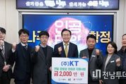 전남투데이 김윤걸 기자 | 전라남도 나주시가 ㈜KT의 사회공헌 기탁을 통해 노후 경로당 난방 환경 개선에 나서며 연말을 맞아 지역 어르신들의 따뜻한 겨울나기를 지원한다. 나주시(시장 윤병태)는 ㈜KT(대표이사 김영섭)로부터 노후 취약 경로당 난방 인프라 지원을 위한 성금 2천만 원을 기탁받았다고 22일 밝혔다. 기탁식은 지난 19일 나주시청 소회의실에서 열렸으며 윤병태 나주시장을 비롯해 김윤명 안전재난과장 등 시 관계자와 KT 관계자들이 참석해 나눔의 의미를 함께했다. KT는 지역사회와의 상생을 경영 철학으로 삼고 다양한 사회공헌 활동을 이어오고 있으며 이번 기탁 역시 겨울철 난방에 취약한 어르신들의 생활 여건 개선을 위해 마련됐다. 기탁된 성금은 사회복지공동모금회를 통해 사단법인 대한노인회 나주시지회에 지정 기탁되며 관내 노후 취약 경로당의 난방비 지원과 노후 시설 개선 등에 사용될 예정이다. 나주시는 이번 지원을 통해 겨울철 한파에 상대적으로 취약한 어르신들의 건강과 안전을 지키는 데 실질적인 도움이 될 것으로 기대한다. 나주시 관계자는 “지역 어르신들의 따뜻한 겨울나기