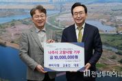 전남투데이 김윤걸 기자 | 전라남도 나주시는 ㈜티디엘 김유신 대표가 지역 발전을 응원하기 위해 고향사랑기부금 1천만 원을 기탁했다고 22일 밝혔다. ㈜티디엘은 광주광역시 북구에 본사를 두고 명품 강소기업 인증을 보유한 기업으로 보호필름, 실리콘 시트 등을 생산하고 있으며 나주에 리튬이차전지 공장을 운영하여 핵심 소재 부품기업으로 성장하고 있다. 김유신 대표는 평소 지역사회에 대한 깊은 관심과 나눔 실천 의지를 바탕으로 나주시 발전과 주민 복지 증진에 힘을 보태고자 기부에 동참했다. 김 대표는 “고향사랑기부제가 지역에 실질적인 도움이 되는 제도인 만큼 이번 기탁이 나주시의 지속 가능한 발전과 주민 삶의 질 향상에 작은 보탬이 되길 바란다”고 말했다. 윤병태 나주시장은 “지역을 향한 따뜻한 마음으로 고향사랑기부제에 동참해 주신 김유신 대표께 깊이 감사드린다”며 “소중한 기부금은 시민이 체감할 수 있는 사업에 투명하고 책임감 있게 사용하겠다”고 밝혔다. 한편 고향사랑기부제는 개인이 주소지를 제외한 지방자치단체에 연간 일정 금액을 기부할 수 있는 제도로 기부자는 세액공제와 함께 기부 금액의 3